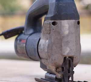 Dieses Werkzeug schneidet durch eine Bewegung unterschiedliche Materialien mit einem einseitig eingespannten Sägeblatt. Moderne Geräte stützen ihre Sägeblätter rückwärtig vor einer Rolle, um die Schnittführung zu präzisieren. Darüber hinaus lassen sich die Auflagentische in einem Winkel von bis zu 45° verstellen. Das erzeugt eine exakte Schnittlinie. Eine der größten Gefahrenquellen bildet das Kabel, das hinten wegführt und besser über einen Kabelclip sicher befestigt wird, um niemals in die Schnittflächen zu gelangen.